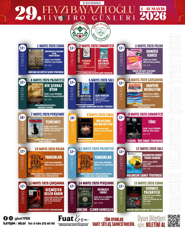 29.Fevzi Bayazıtoğlu Tiyatro Günleri boyunca Giresun, sahnenin ışıklarıyla aydınlanacak; alkışlar sanatın coşkusuna eşlik edecektir. Tüm hemşehrilerimizi 15 gün sürecek olan tiyatro festivalimize davet ediyorum” diyerek sözlerini tamamladı.