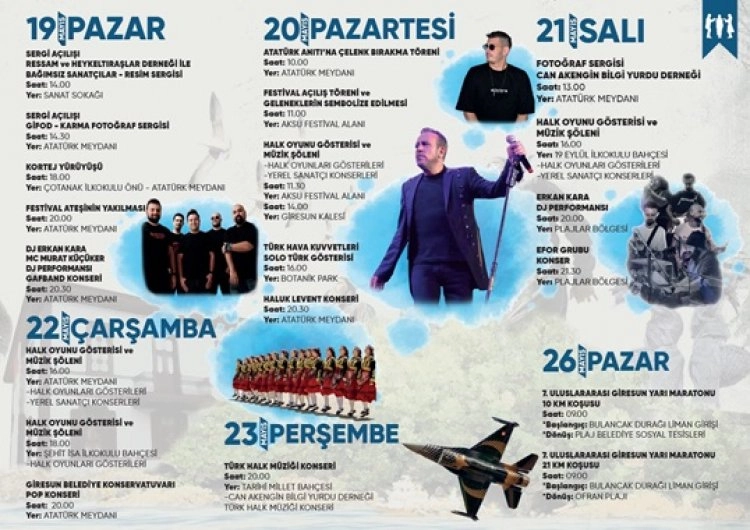 Giresun Kalesi (14.00): Halk Oyunları Gösterileri ve Müzik Şöleni-Yerel Sanatçı Konserleri.
