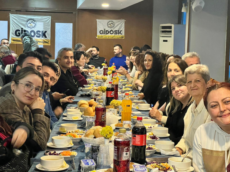 GİDOSK üyeleri 4 Mart 2026'da Giresun Uygulama Oteli'nde iftar sofrasında buluştu. Giresun Dağcılık ve Doğa Sporları Kulübü Başkanı Ahmet Kılıç, dayanışma vurgusu yaptı ve organizasyonda emeği geçenlere teşekkür etti.