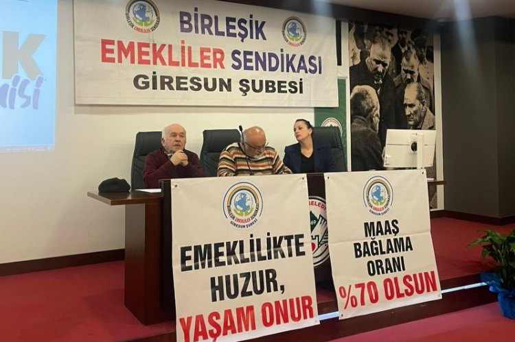 Birleşik Emekliler Sendikası Giresun Şubesi, 5 Nisan 2026'da ilk genel kurulunu yaptı. CHP Giresun İl Başkanı Gökhan Şenyürek, emeklilerin insanca yaşam talebinin ertelenemez olduğunu vurguladı. Sendika, Giresun'da örgütlenerek mücadele hattı inşa etti. Emeklilerin gündemi geçim derdi.