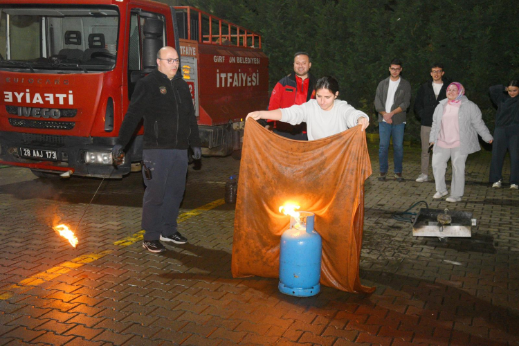 Giresun Belediyesi İtfaiye Müdürlüğü, Giresun Üniversitesi Tıp Fakültesi öğrencilerini yangın güvenliği konusunda hem teorik hem de uygulamalı olarak bilgilendirdi.