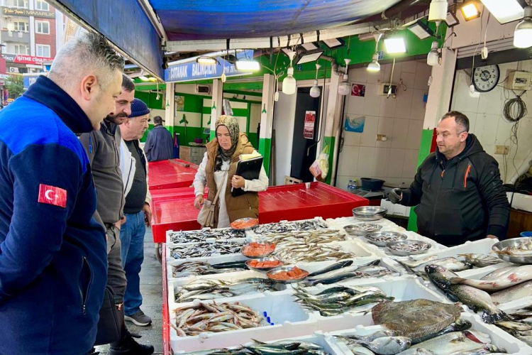 Kontroller çerçevesinde tezgâhlardaki balıkların fiyat etiketleri, ürünlerin tazelik durumu ve hijyen standartları dikkatlice gözden geçirildi.