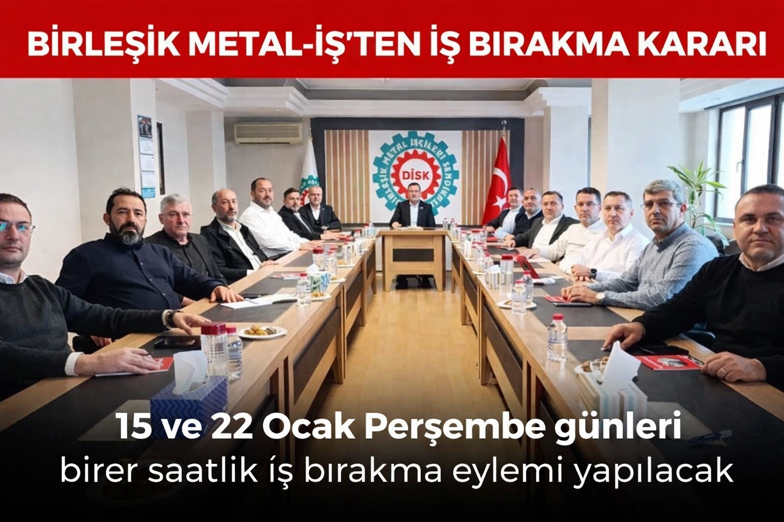 MESS ile 8 Ocak’ta gerçekleştirilen son toplantının ardından bir araya gelen DİSK Birleşik Metal İş Sendikası Genel Yönetim Kurulu, ocak ayında yapılacak olan yürüyüşlerden iş durdurmaya, kitlesel basın açıklamalarından grev eğitimlerine kadar uzanan geniş kapsamlı bir eylem programını duyurdu.