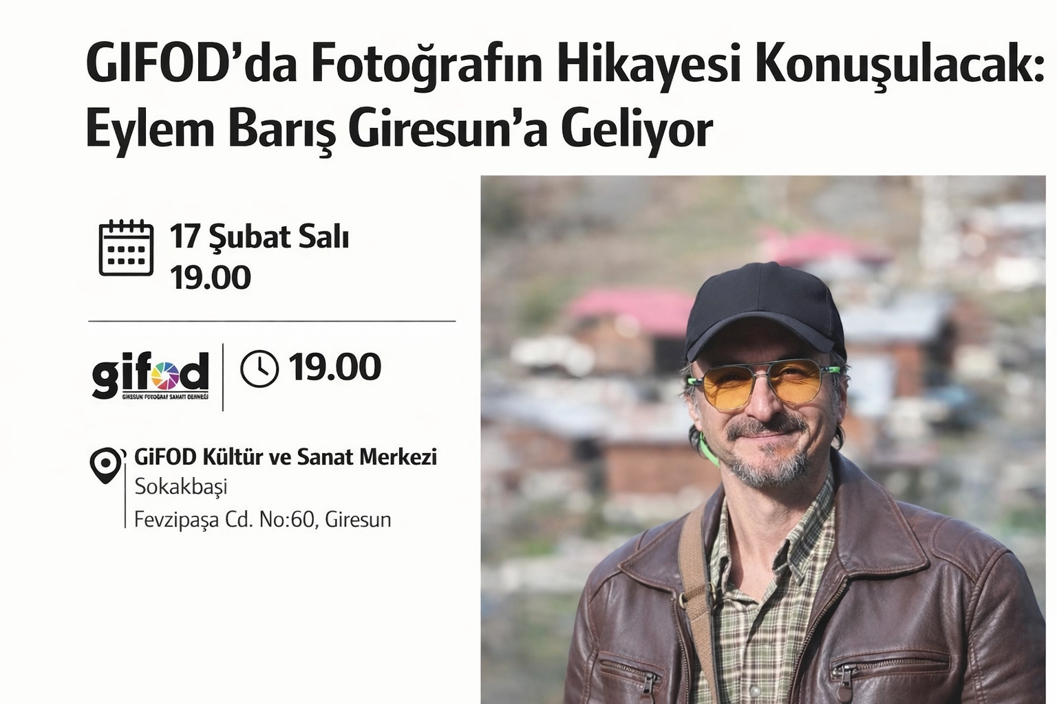 Giresun’da fotoğraf sanatına gönül verenleri buluşturan GİFOD (Giresun Fotoğraf Sanatı Derneği), 17 Şubat 2026 Salı günü önemli bir ismi ağırlayacak. Fotoğraf sanatçısı Eylem Barış, düzenlenecek özel söyleşi programında Giresunlu fotoğrafseverlerle bir araya gelecek.