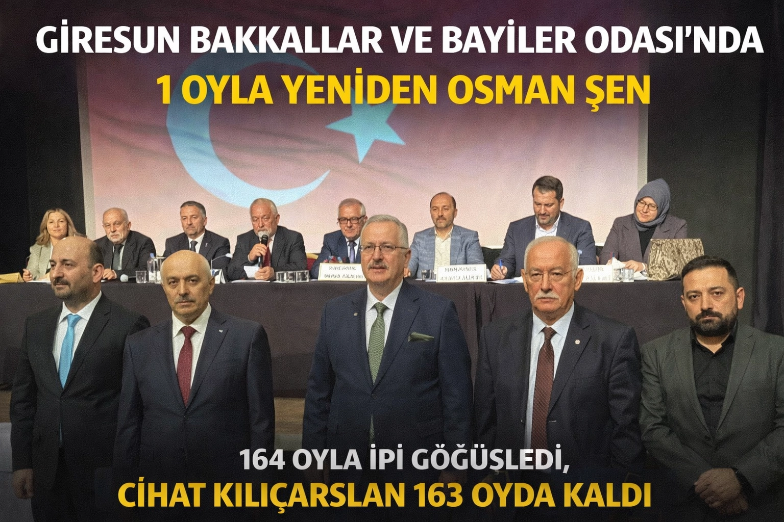 Giresun esnaf teşkilatında sonucu son oylar belirledi. Giresun Bakkallar ve Bayiler Odası seçiminde mevcut başkan Osman Şen, yalnız 1 oy farkla güven tazeledi. Yarışın baştan sona sert ve dengeli geçtiği seçimde tablo, salondaki her oyun belirleyici hale geldiğini gösterdi.