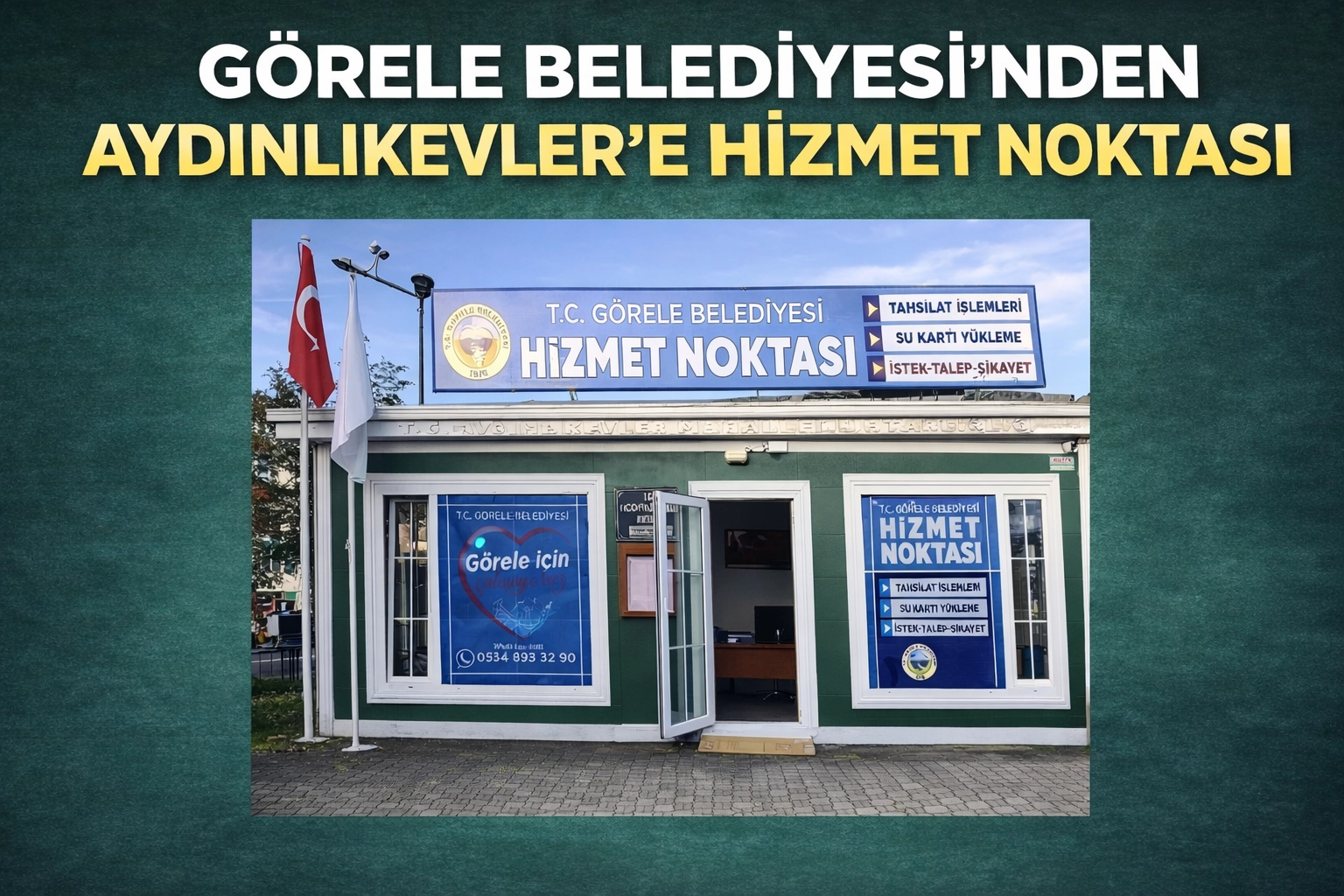 Görele Belediyesi, Aydınlıkevler Mahallesi’nde bulunan hizmet noktasında vatandaşlara yerinde belediye hizmeti sunuyor. Hizmet noktasında tahsilat işlemleri, su kartı yükleme ile istek, talep ve şikâyet başvuruları gerçekleştiriliyor.