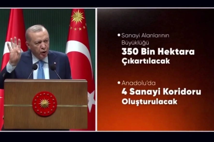 Cumhurbaşkanı Erdoğan, sanayi ve istihdam politikalarına değinerek: “Anadolu’da 4 yeni sanayi koridoru oluşturacağız. Mevcut organize sanayi bölgelerimiz ile yeni Mega Endüstriyel Bölgelerin demiryolu bağlantılarını ve limanlara erişimlerini sağlıyoruz.” diye konuştu.