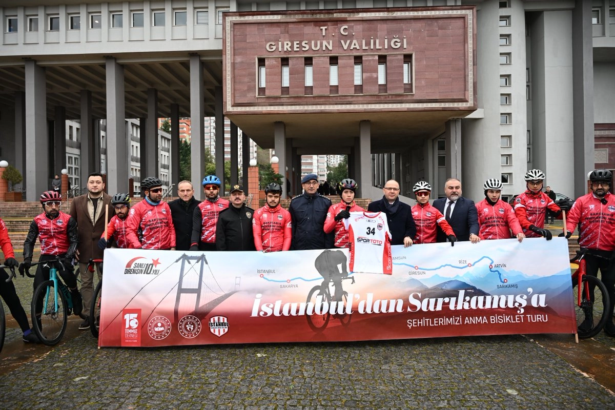 Vali Sayın Mehmet Fatih Serdengeçti, İstanbul’dan başlayarak Sarıkamış’a ulaşmayı hedefleyen Şehitlerimizi Anma Bisiklet Turu kapsamında ilimize gelen sporcuları Valiliğimiz önünde uğurladı. Uğurlama programında şehitlerimiz için dualar edilirken, milli hafızanın canlı tutulmasının önemine vurgu yapıldı.