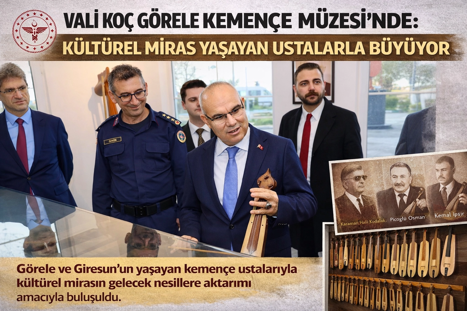 Vali Mustafa Koç, Görele Kemençe Müzesi’ni ziyaret etti. Koç, müzede sergilenen eserleri yerinde inceledi, kemençenin bölge kültüründeki yeri ve kültürel mirasın korunmasına dönük çalışmalara ilişkin bilgi aldı.
