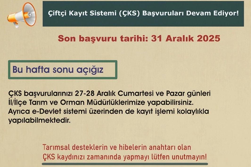Üreticiler, detaylı bilgi için İl/İlçe Tarım ve Orman Müdürlüklerine başvurabilir ya da e-Devlet üzerinden ÇKS işlemlerini kontrol edebilir.