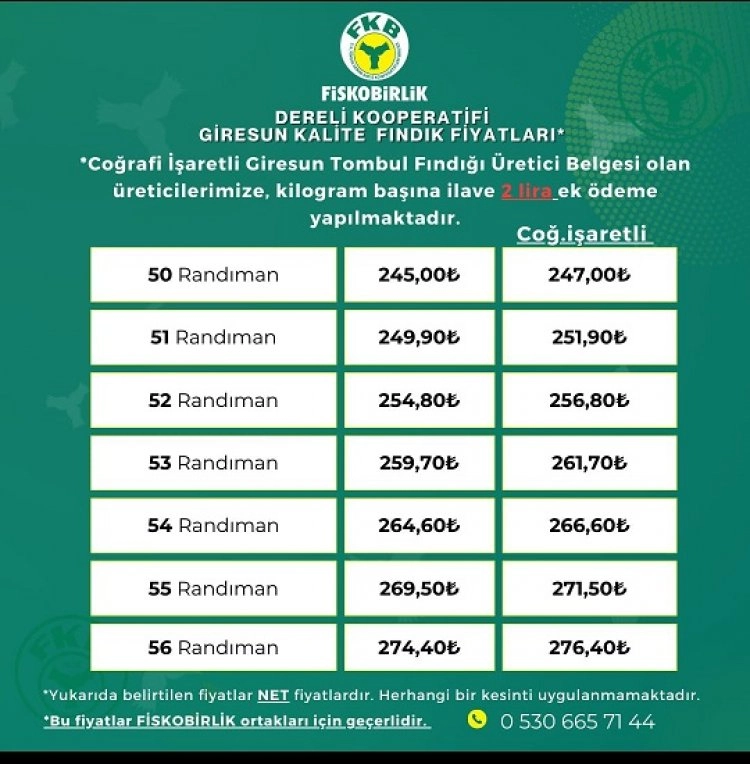 26.08.2025 fİSKOBİRLİK FINDIK ALIM FİYATI