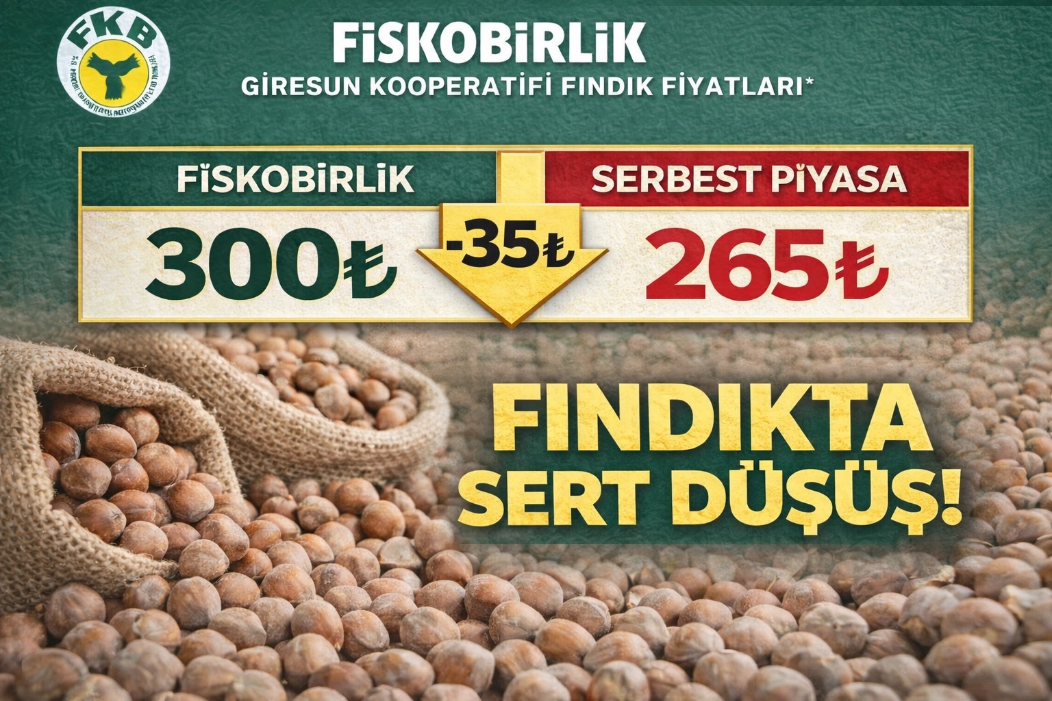 Kısa adı FİSKOBİRLİK olan Fındık Tarım Satış Kooperatifleri Birliğinin 50 randıman tombul fındıkta yaptığı ardışık fiyat değişimleri sonrası, serbest piyasada 35 TL’lik ani bir düşüş yaşandı.