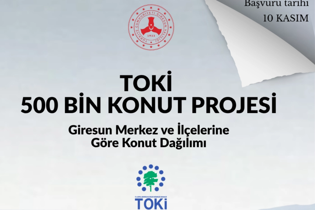 Toplu Konut İdaresi Başkanlığı (TOKİ) tarafından yürütülen 2025 Yılı 500 Bin Sosyal Konut Projesi kapsamında Giresun’da toplam 1.356 konut üretilecek.