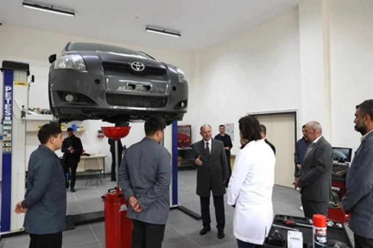 Ziyaret kapsamında Motorlu Araçlar Bakım ve Onarım Atölyesi ile İmalat Sanayi Beceri Merkezi Projesi kapsamında kurulum çalışmaları devam eden İleri Düzey Kaynakçılık Atölyesi ve Gaz Yakıcı Cihazlar Atölyesi'ni yerinde inceleyen Vali Serdengeçti, uygulamalı eğitimin önemine vurgu yaptı.