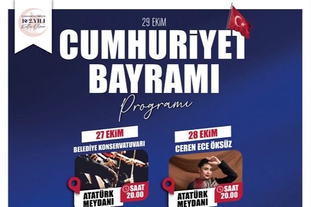 ETKİNLİK PROGRAMI ŞU ŞEKİLDE: 27 Ekim Pazartesi: Belediye Konservatuvarı Konseri. Atatürk Meydanı, saat 20.00. 28 Ekim Salı: Ceren Ece Öksüz Konseri. Atatürk Meydanı, saat 20.00. 29 Ekim Çarşamba: Fener Alayı Yürüyüşü: Çotanak İlkokulu-Atatürk Meydanı. Başlangıç 18.15. DJ Erkan, DJ Performansı: Atatürk Meydanı, saat 19.30. Monte Krizde Konseri: Atatürk Meydanı, saat 20.30