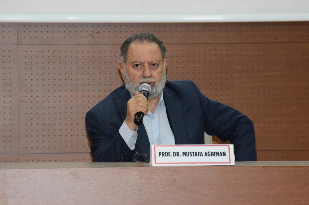 Sonrasında kürsüye çıkan Ağrı İbrahim Çeçen Üniversitesi İslami İlimler Fakültesi, İslam Tarihi ve Sanatları Bölümü Öğretim Üyesi Prof. Dr. Mustafa Ağırman, “Görev Şuuru, Aile ve Namaz” başlıklı konferansını sundu.