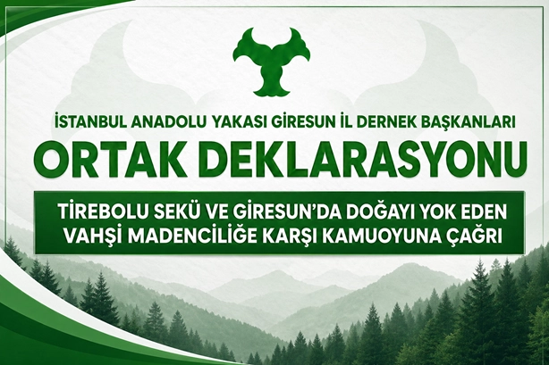 Bizler, 25 Nisan 2026 tarihinde İstanbul Anadolu Yakası’nda bir araya gelen il başkanları olarak; Tirebolu Sekü başta olmak üzere Giresun’un dağlarında, ormanlarında, derelerinde ve yaşam alanlarında yürütülen vahşi madencilik faaliyetlerine karşı ortak irademizi kamuoyuyla paylaşıyoruz.