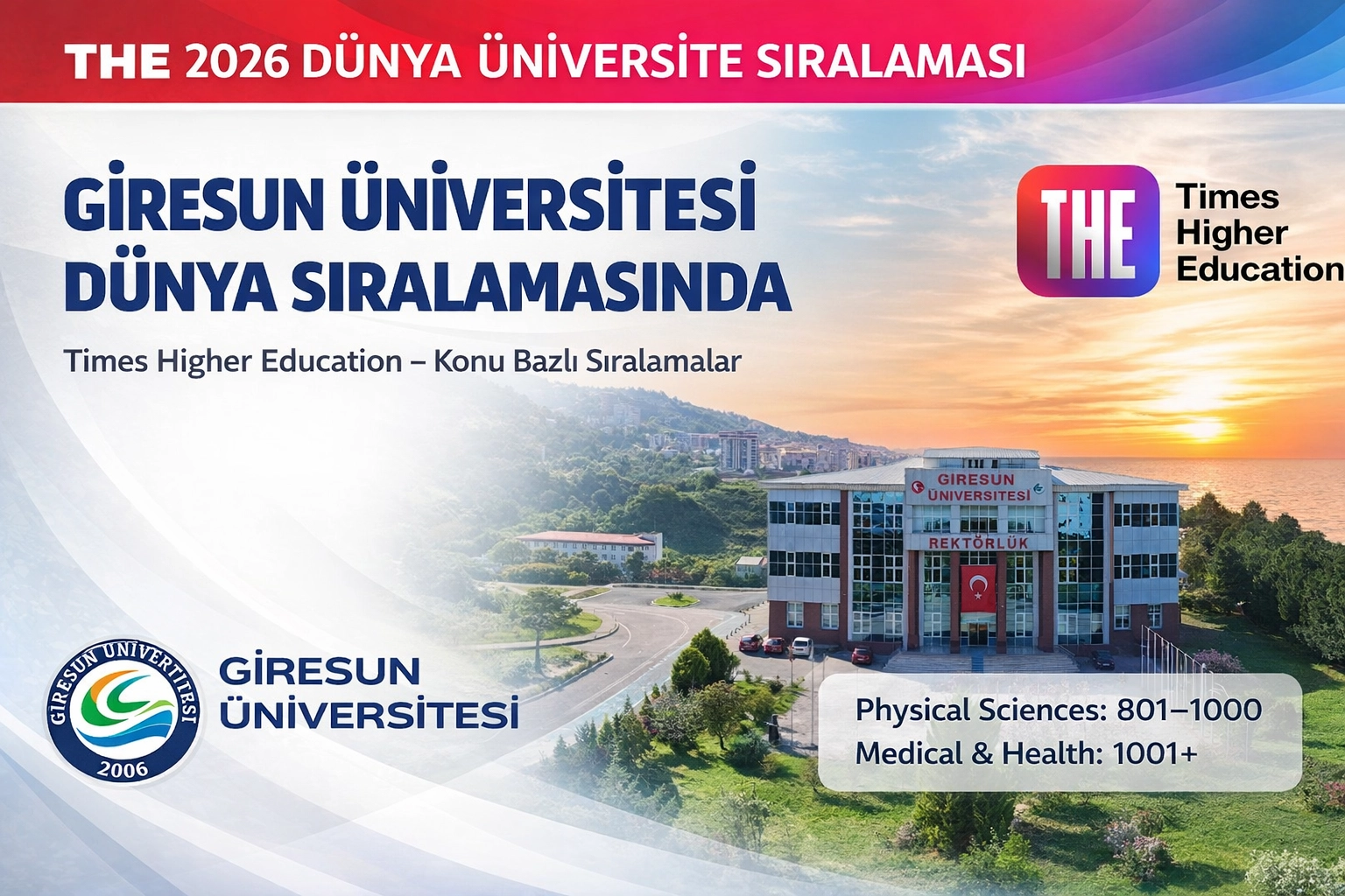 Fizik Bilimleri alanında yapılan değerlendirmede Giresun Üniversitesi, dünya genelinde 801–1000 bandında yer aldı. Fizik Bilimleri kategorisi; fizik, kimya, matematik, istatistik, astronomi, jeoloji, çevre, yer ve deniz bilimleri gibi temel disiplinleri kapsıyor. Bu sonuç, üniversitenin özellikle temel bilimler ve mühendislik temelli araştırma kapasitesinin uluslararası ölçekte görünür hâle geldiğini ortaya koydu.