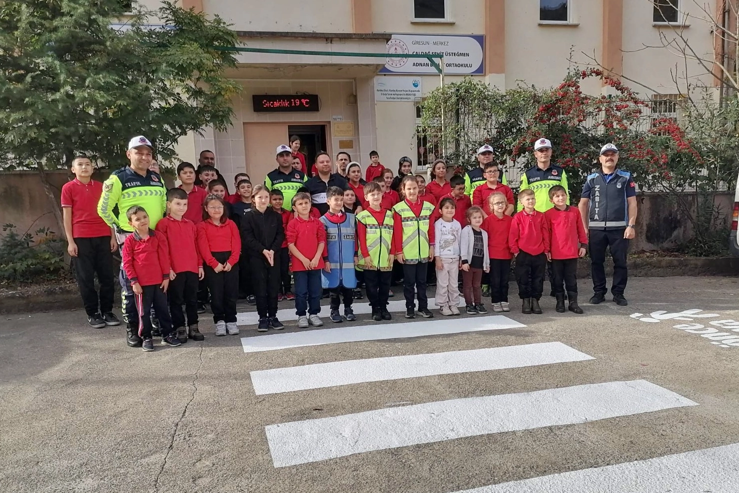 Öğrencilerin ders saatlerinde daha emniyetli bir şekilde karşıdan karşıya geçmelerine olanak tanıyan bu çalışmaya Jandarma Trafik Ekipleri de destek vermiştir.