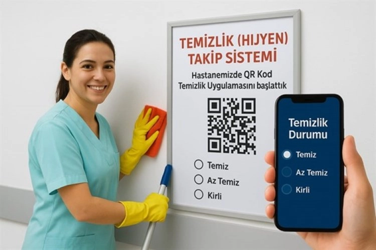 Yeni uygulama kapsamında vatandaşlar ve hastane çalışanları; tuvalet, mescit, çocuk oyun alanı, bebek bakım odası ve asansör gibi ortak kullanım alanlarındaki temizlik durumunu cep telefonlarıyla QR kod okutarak anında bildirebilecek.