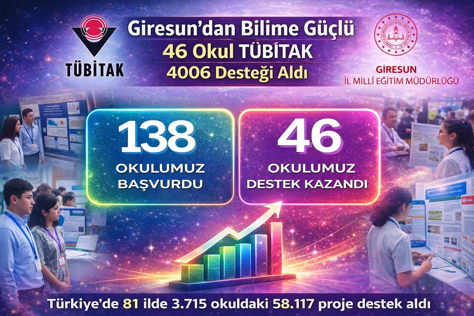 GİRESUN’DAN BİLİME GÜÇLÜ KATILIM: 46 OKUL TÜBİTAK 4006 DESTEĞİ ALDI