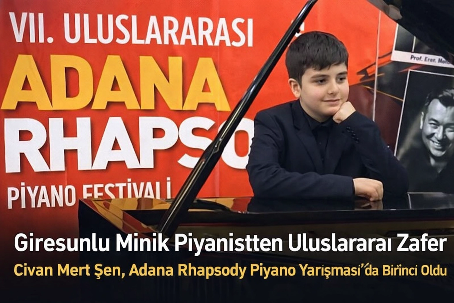 Giresunlu genç piyanist Civan Mert Şen, uluslararası düzeyde düzenlenen prestijli bir müzik organizasyonunda elde ettiği birincilikle hem ailesinin hem de memleketinin gururu oldu. Bu yıl yedincisi gerçekleştirilen Uluslararası Adana Rhapsody Piyano Festivali ve Yarışması sonuçlandı ve genç sanatçı kendi kategorisinde zirveye adını yazdırdı.