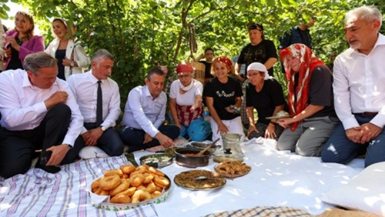 Özel, “Bugün Giresun’a gideceğiz ve mitingi yapacağız. Biz aslında fiyatı ilan edin, bir de maliyetlerin üzerinde en az 165 lira, hatta Trabzon milletvekillerimiz 180 lira diye açıklama yapmıştı. Fiyat isteyelim diyorduk, 130 lira fiyat verdiler. Bakalım nasıl olacak miting” dedi. Üretici, “Sayın Genel Başkanım 160 lira bile fındığı şu anda kurtarmıyor. Ben 1998 yılında altı ton Fiskobirlik’e fındık verdiğimde üç tane sıfır araba alıyordum. Fiskobirlik’ten aldığım parayla üç tane sıfır araba alıyordum. Şimdi üç tane sıfır araba 1,5 milyon liradan hesaplasan, 4,5 milyon lira. Yani o kadar kaybettik, 98’den sonra. Devamlı geri gidiyoruz. Ordu’ya ev yaptırdık, hep 2000’den önce. Fındık parası ile yaptım ben bunları. Şimdi kendi maaşımı harcıyorum ben fındığı bahçede bırakmamak için, rezil olmamak için. Artık bundan sonra da daha da toplamayız” diye konuştu. Özel, üreticinin derdini dinledikten sonra fındık üreticisi kadınlarla beraber Karadeniz’in yöresel şarkılarına eşlik etti.