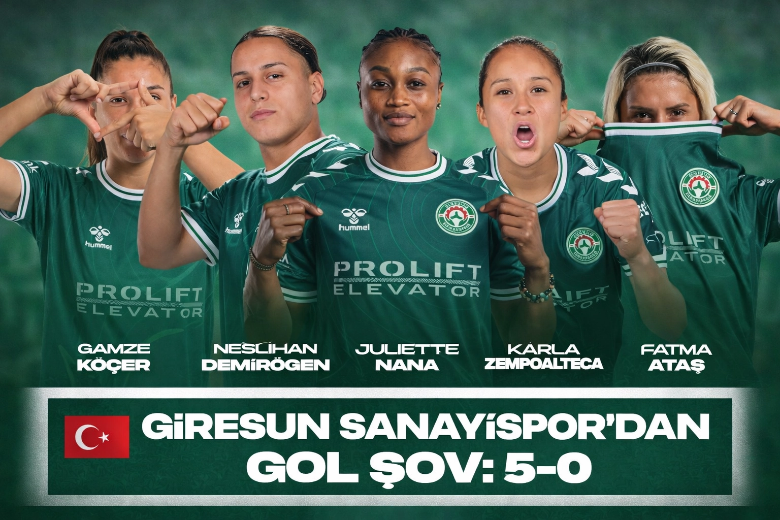 Giresun Sanayispor, Turkcell Kadın Futbol Süper Ligi 19. hafta mücadelesinde sahasında ağırladığı 1207 Antalyaspor’u 5-0 mağlup ederek haftanın en farklı sonuçlarından birine imza attı.