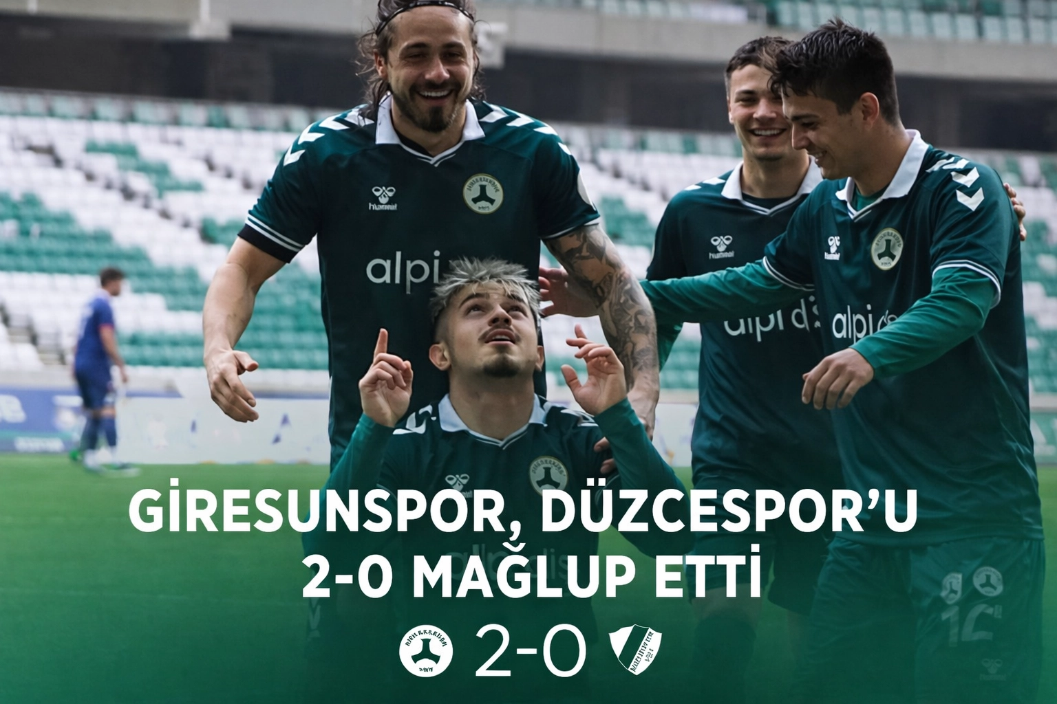 Giresunspor, bugün sahaya yalnızca bir lig maçı için çıkmadı; ağır geçen sezonun son iç saha sayfalarından birini oynadı ve Düzce Cam Düzcespor karşısında sahadan 2-0 galip ayrıldı. İlk yarısı golsüz tamamlanan karşılaşmada golleri 49. dakikada Şahin Dik ve 86. dakikada Orçun Kaan Biçer attı.