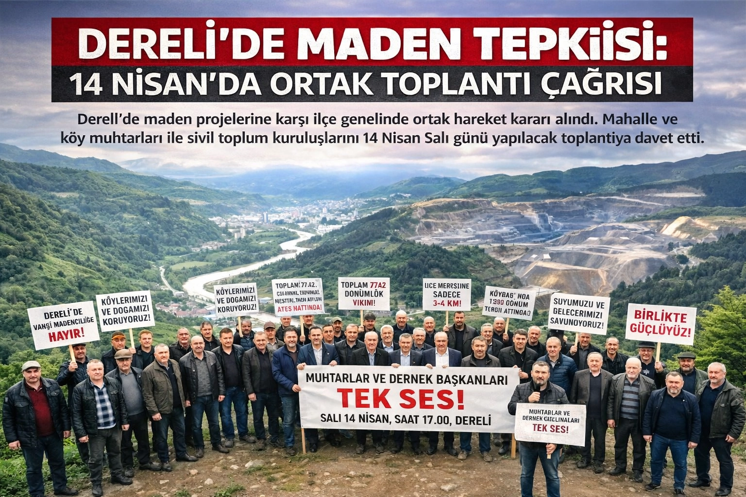 Dereli’deki toplantı 14 Nisan Salı günü gerçekleştirilecek. Muhtarlar, sivil toplum kuruluşları ve vatandaşlar, maden faaliyetlerine karşı ortak karar almak için bir araya gelecek.