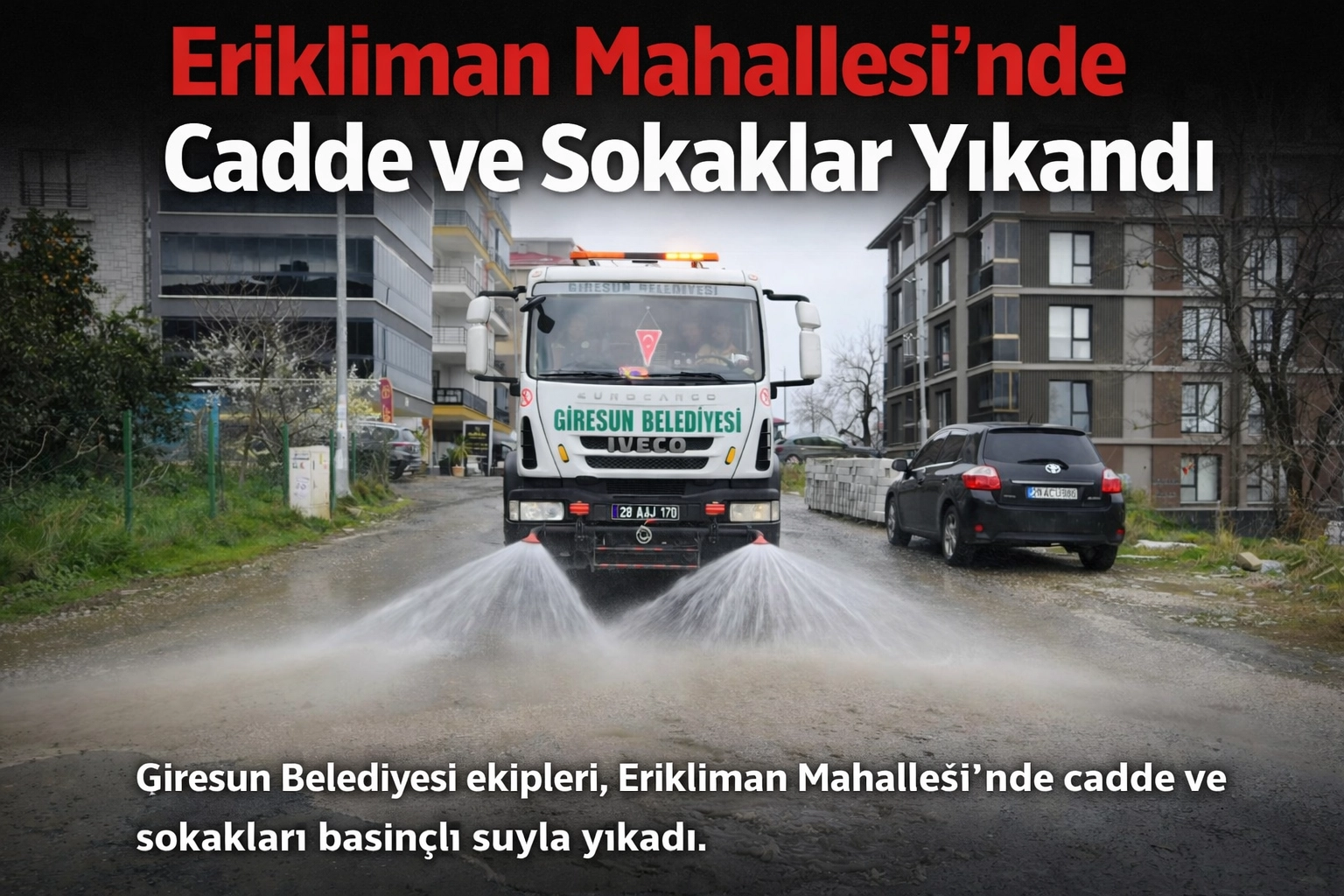 Giresun Belediyesi Temizlik İşleri Müdürlüğü ekipleri, şehir genelinde sürdürdüğü temizlik çalışmaları kapsamında Erikliman Mahallesi’nde cadde ve sokakları basınçlı suyla yıkayarak daha temiz ve hijyenik hale getirdi.