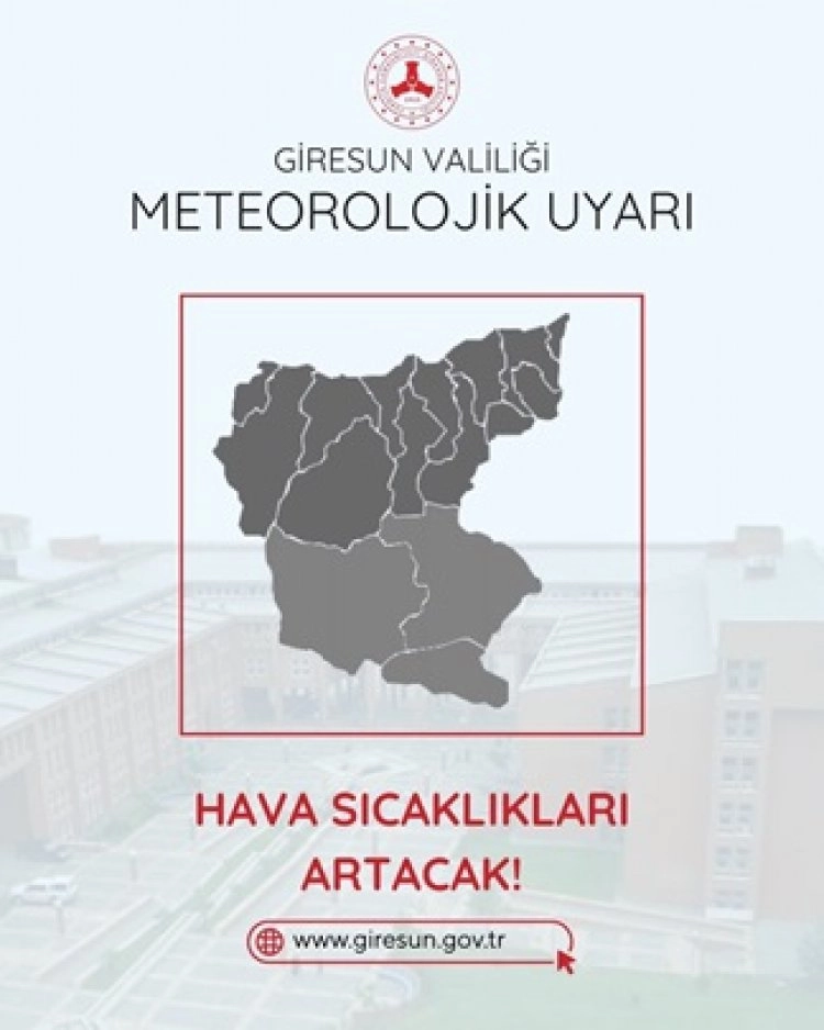 Buna göre; halen mevsim normalleri civarında seyreden hava sıcaklıklarının, 27 Temmuz’dan itibaren Giresun’un iç kesimlerinde 6 ilâ 12 °C artarak mevsim normallerinin üzerine çıkacağı tahmin edilmektedir. Kıyı kesimlerde ise sıcaklıkların 3 ilâ 6 °C artması beklenmektedir.