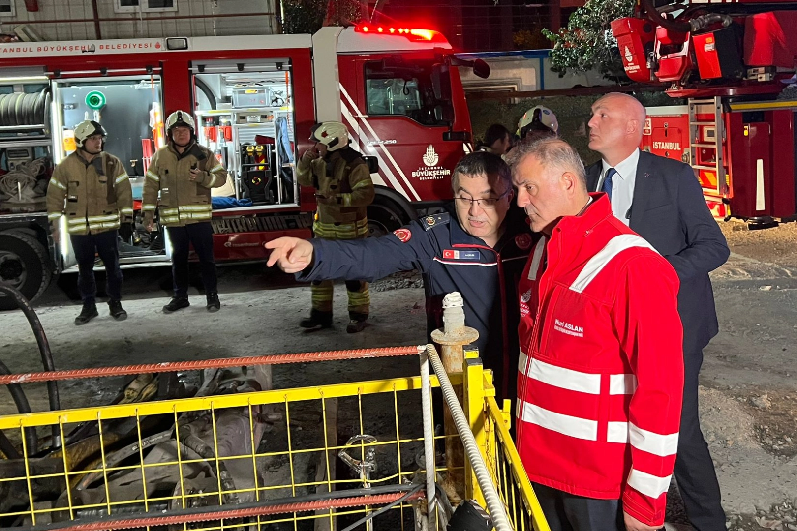 İBB Başkanvekili Nuri Aslan, şantiye sahasına gelerek olay hakkında yetkililerden bilgi aldı ve kurtarma çalışmalarını yakından takip etti.