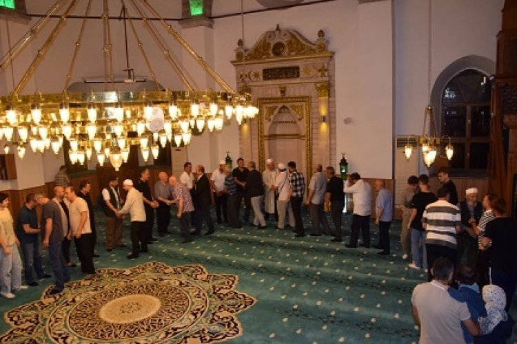 İl Müftüsü Kılıçbay, yatsı namazının cemaatle kılınmasının ardından camiyi dolduran vatandaşlarla selamlaştı.