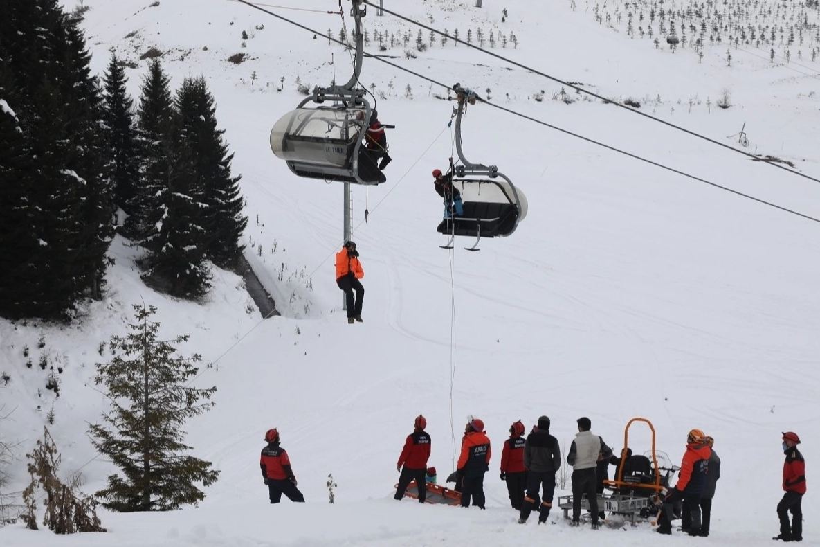 Kurgulanan senaryoya göre, 25 metre yükseklikteki telesiyej kabininde mahsur kalan 4 kişi, ekiplerin koordineli ve profesyonel müdahaleleri sonucunda başarılı bir şekilde kurtarıldı.