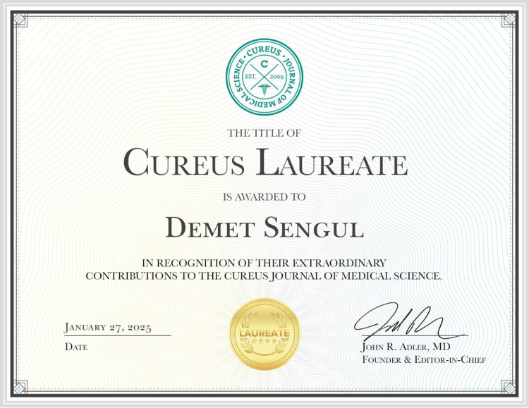 Cureus dergisi tarafından verilen Laureate Status; WoS ve ISI kriterleriyle uyumlu çok aşamalı değerlendirme süreçleri sonucunda verilmekte, adayların yayın performansı, atıf etkisi, hakemlik ve editöryal katkıları ile bilimsel disipline sağladıkları uzun vadeli değer bütüncül biçimde ele alınmaktadır. Bu yönüyle ödül, akademik yayıncılık dünyasında en üst düzey takdir mekanizmalarından biri olarak değerlendirilmektedir.