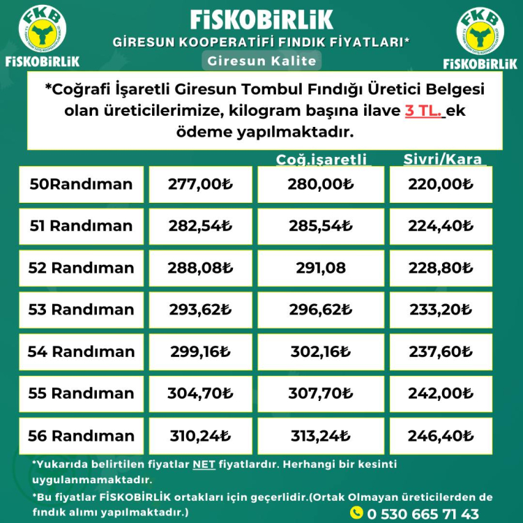 FINDIKTA FKB: 277 TL/KG - SERBEST PİYASA: 240 TL/KG