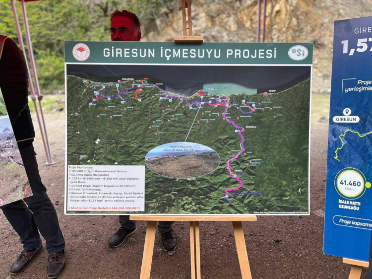 Giresun'un 100 yıllık su ihtiyacını karşılayacak dev projenin ilk etabı, 1 milyar 570 milyon TL bedelle başladı. Aksu Deresi'nden alınacak suyla yıllık 31,5 milyon m³ içme suyu sağlanacak ve 41,4 km'lik isale hattı inşa edilecek.