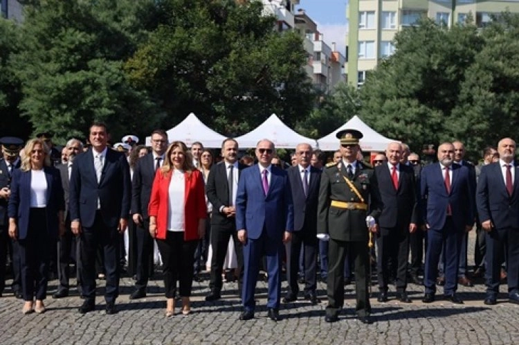 Sabah saat 10.00'da başlayan program, Atatürk Anıtı'na çelenk sunumuyla başladı. Vali Mehmet Fatih Serdengeçti, Garnizon Komutanı İkmal Albay İbrahim Erdinç Yalçın ve Belediye Başkanı Fuat Köse'nin anıta çelenk sunmasının ardından, saygı duruşu ve İstiklal Marşı okundu. Bayrakların göndere çekilmesini takiben program, Valilik Makamı'nda devam etti.