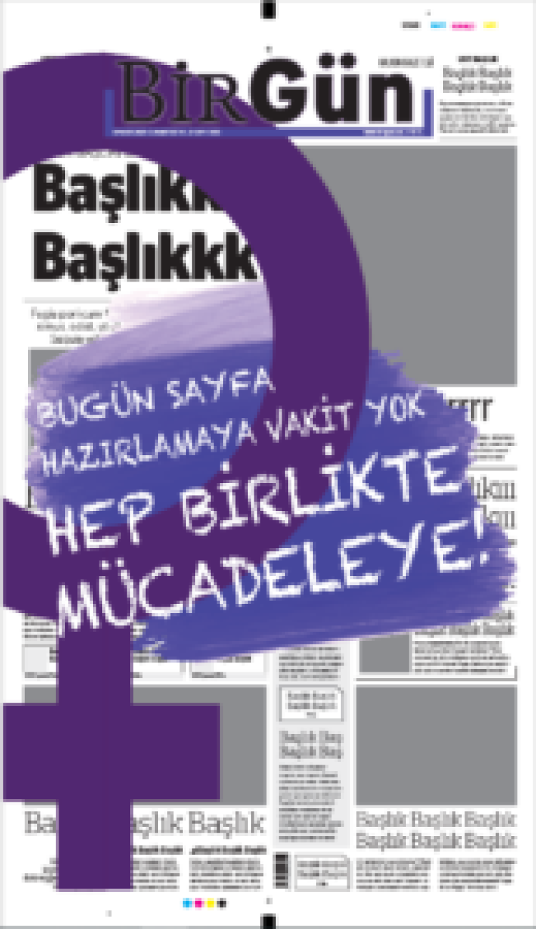 Erkek şiddeti ve toplumsal cinsiyet eşitsizliği de buna karşı kadınların mücadelesi de sürüyor. Kardelen Tatar Sinecan da “Bugün sayfa hazırlamaya vakit yok, hep birlikte mücadeleye” çağrısıyla hazırladığı sayfayla kadınların öfkesini, dayanışmasını ve ortak mücadelesini, etkili bir tasarıma dönüştürerek bir kez daha görünür kıldı ve Sayfa Tasarımı Ödülü’nü almaya hak kazandı.