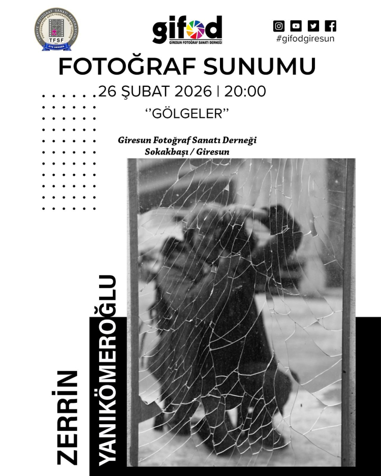 Giresun Fotoğraf Sanatı Derneği (GİFOD) üyesi Zerrin Yanıkömeroğlu, “Gölgeler” adlı fotoğraf sunumu ve söyleşisiyle fotoğrafseverlerle buluşuyor.
