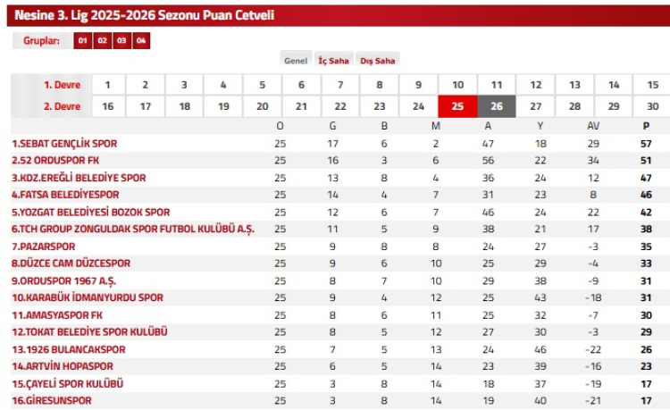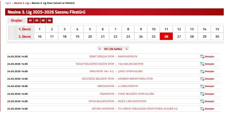 Haftanın diğer maçları da puan cetvelini doğrudan etkileyecek nitelikte. Lider Sebat Gençlik Spor, Amasyaspor FK karşısına çıkacak. 52 Orduspor FK ise Giresunspor deplasmanında puan arayacak. Fatsa Belediyespor ile Düzce Cam Düzcespor, Kdz. Ereğli Belediye Spor ile Karabük İdmanyurduspor karşılaşmaları da hem play-off hattını hem orta bloğu şekillendirecek.