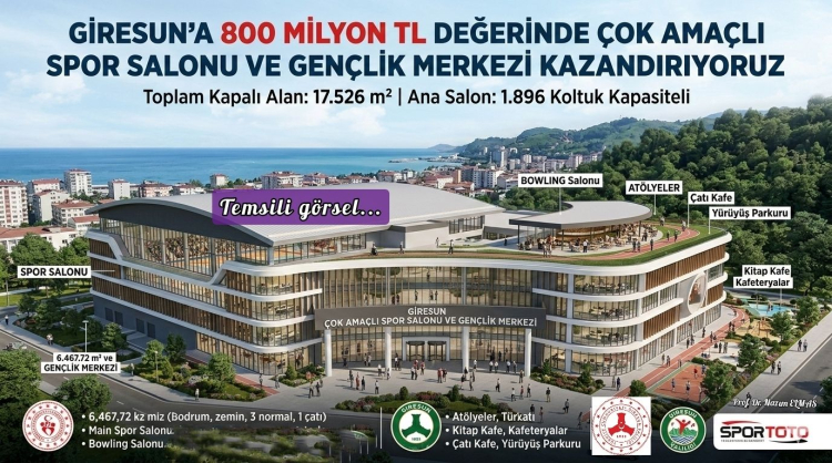 GİRESUN’A 800 MİLYON TL DEĞERİNDE ÇOK AMAÇLI SPOR SALONU VE GENÇLİK MERKEZİ