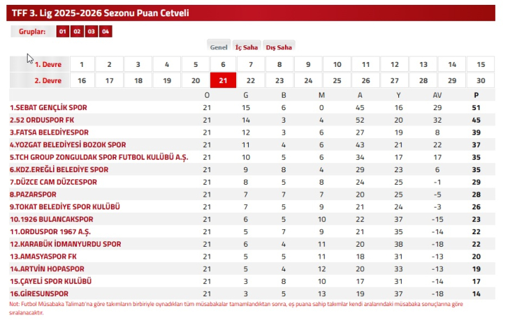 Giresunspor, TFF 3. Lig 2025-2026 Sezonu 3. Grup 21. Hafta mücadelesinde sahasında Kdz. Ereğli Belediyespor’u konuk etti ve tek golle sahadan 1-0 mağlup ayrıldı.