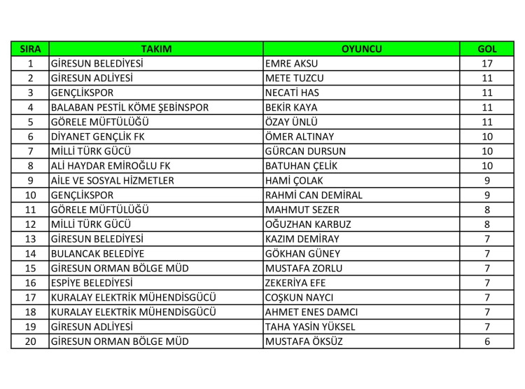 5 Kasım 2025’te başlayan organizasyonda bugüne kadar toplam 72 karşılaşma oynandı. Müsabakalar; 75. Yıl Stadı, 15 Temmuz Sahası, Keşap İlçe Stadı, Espiye İlçe Stadı, Görele İlçe Stadı ve Şebinkarahisar İlçe Stadı’nda gerçekleştirildi.