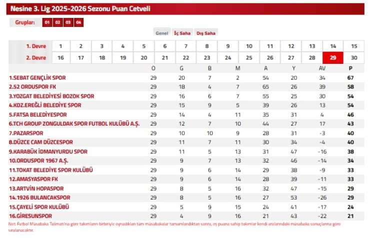 Ancak Bulancak’taki galibiyet, puan tablosunda beklenen karşılığı üretmedi. Alt sıraları doğrudan ilgilendiren haftada Amasyaspor FK’nin sahasında Fatsa Belediyespor’u 1-0 mağlup etmesi, küme hattındaki dengeyi Bulancakspor aleyhine kesinleştirdi. Bu sonuçla Amasyaspor 33 puana çıktı, Bulancakspor ise 29 puanda kaldı.