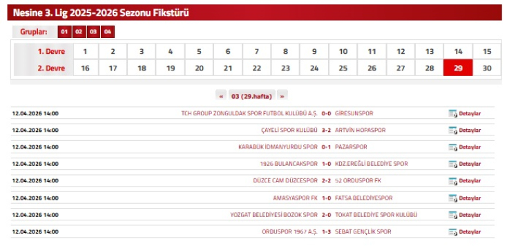 29. HAFTA SONUÇLARI