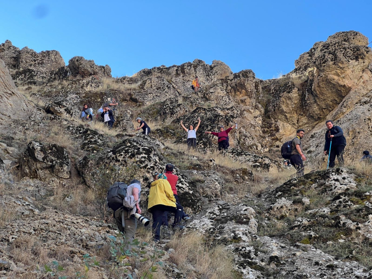Gezinin ikinci durağında, Pülümür’deki kral mezarlarına gidildi. 40 dakikalık zorlu bir yürüyüşün ardından bu bölgeye ulaşan doğaseverler, tarihi yapıları ve manzarayı hayranlıkla izledi. Katılımcılar, bu deneyimi bolca fotoğraf çekerek ölümsüzleştirdi.